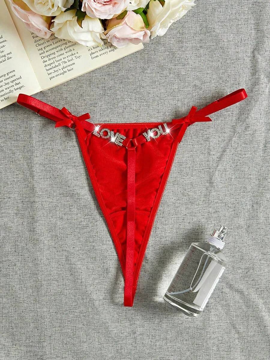 "Love You" Rhinestone Panty, Red, One Size - 2 For $24.99