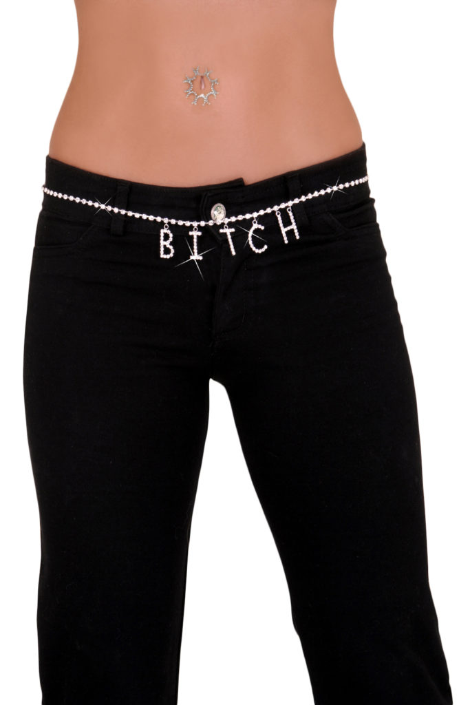 "BITCH" Rhinestone Belly Chain, Silver, One Size
