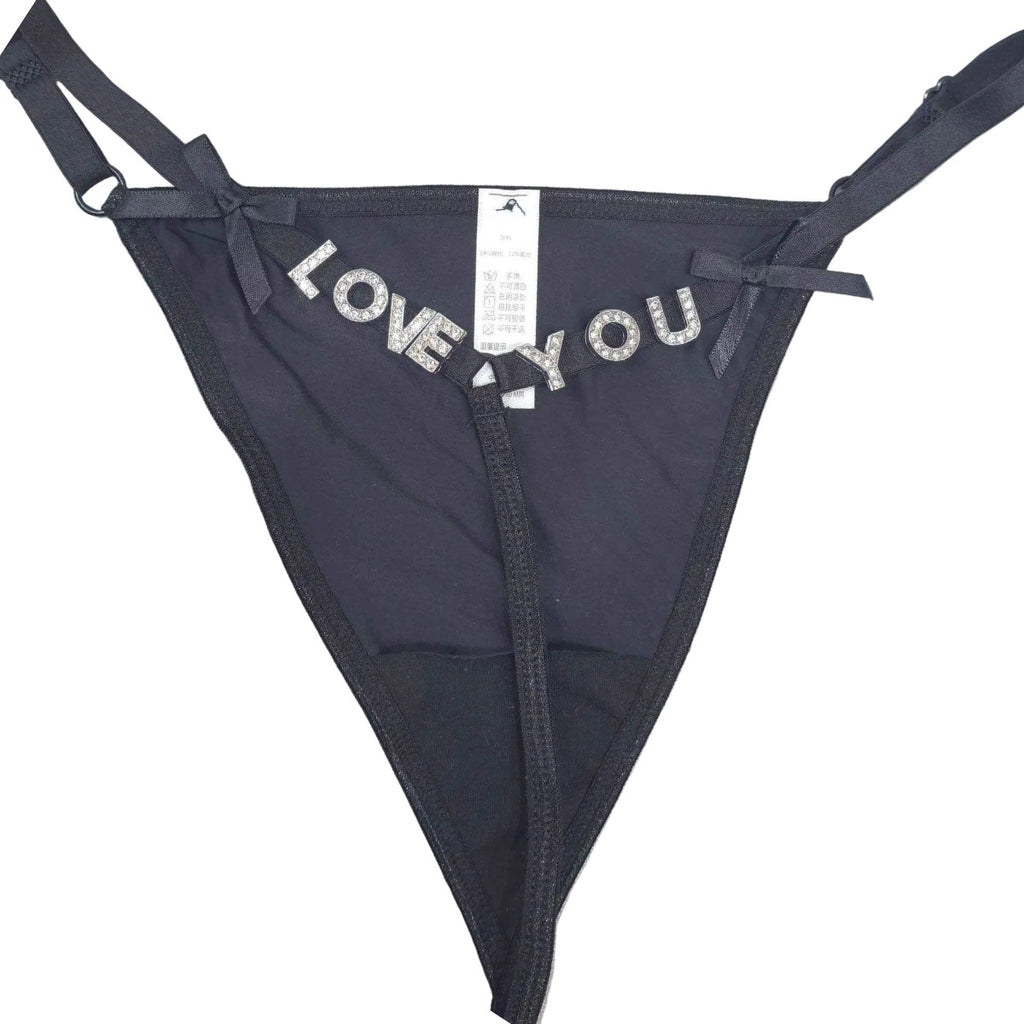 "Love You" Rhinestone Panty, Black, One Size - 2 For $24.99